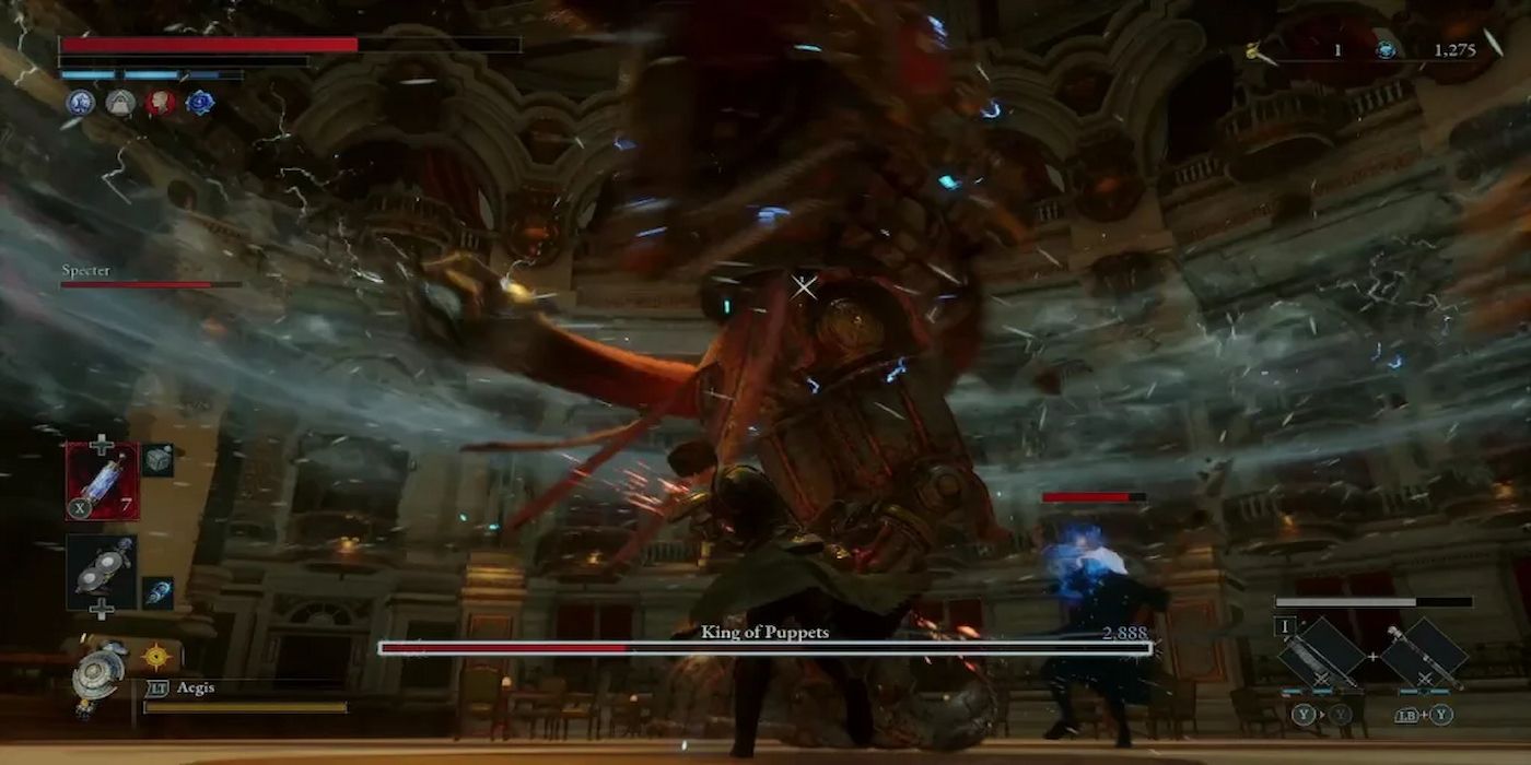 Mentiras de P tiene una buena cantidad de enemigos desafiantes y peleas contra jefes, pero el Rey Marioneta no es uno que se olvide fácilmente. El jefe final del capítulo seisquien también marca el punto medio del juegoes un jefe de dos fases lucha que pasa de ser un gran robot gigante a ser un títere veloz y hábil. Como resultado, debes ajustar tu estilo de juego en medio de la batalla, que es una de las razones por las que este jefe en particular es tan difícil.