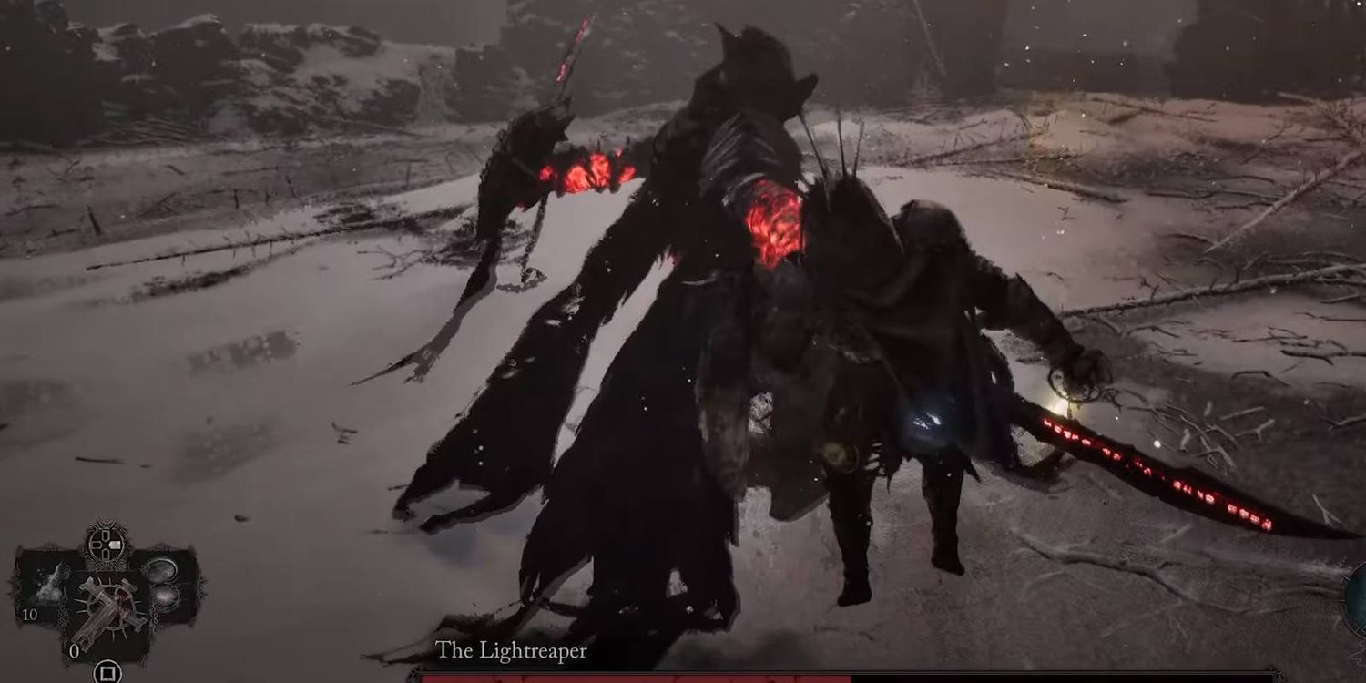 La última vez que te encuentras con el Lightreaper es en el afueras del castillo de Bramis en el Plaza superior de Calrath ubicación. Utilizando los mismos movimientos que antes, sólo que esta vez sin la montura, el jefe tiene la capacidad de recuperar lentamente la salud durante la pelea. Necesitarás Destruye la Entidad Umbral sobre la arena del jefe. para eliminar este efecto, de lo contrario, esta pelea contra el jefe es casi imposible de vencer en Señores de los Caídos.