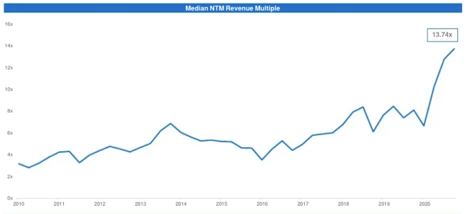 Esta mañana, en cambio, estamos hablando de un viejo favorito: las valoraciones de software. La gente de Empresas de batería hemos compilado una inmersión prolongada en el mercado de software de 2020 que vale la pena nuestro tiempo; puede leer aquí; Proporcionaré números de página a medida que avanzamos, porque ayuda a explicar algunas valoraciones de software.