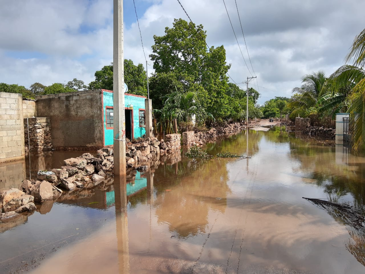 Calles inundadas en Canakom (Yaxcabá, Yucatán) Foto: Cortesía