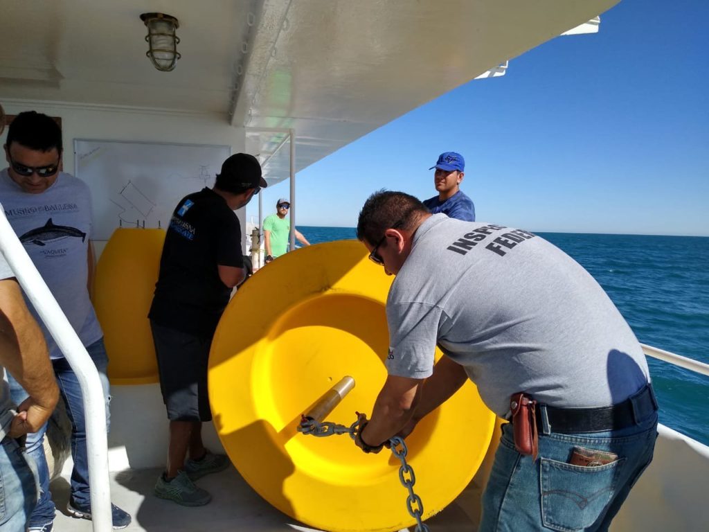 En total serán 10 boyas y las dos depositadas este jueves corresponden a la primera área y delimitan la zona para facilitar las labores de inspección y vigilancia de la vaquita marina.