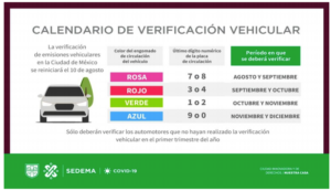 El servicio de verificación de emisiones vehiculares fue suspendido el pasado 25 de marzo, como parte de las medidas para prevenir la propagación del Covid-19. El 11 de junio, se informó que, como parte de las medidas establecidas por la emergencia sanitaria, en 2020 solo se llevará a cabo una verificación de los automóviles en la capital de acuerdo con el siguiente calendario: