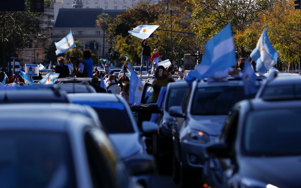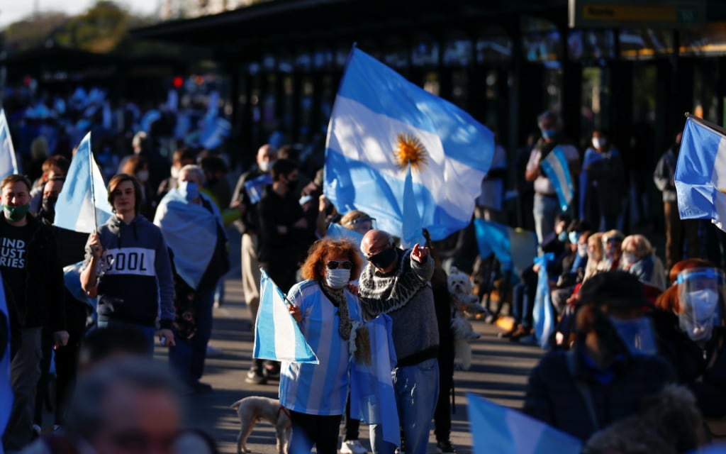 Con cubrebocas, argentinos salen a las calles a protestar contra el gobierno de Fernández