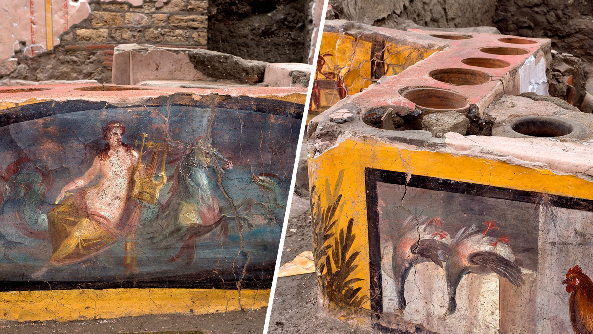 Se trata de termopolio, donde se solía servir comida a las clases más bajas de la ciudad, perfectamente conservado con el mostrador con la imagen de una ninfa marina a caballo y otros animales con colores tan brillantes que parecen tridimensionales, explican.