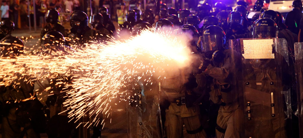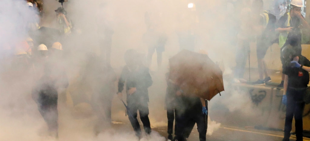 Hoy es el día que los manifestantes están ofreciendo más resistencia. No se retiran pese a los gases lacrimógenos, que están disparando con profusión. Revuelta urbana en #HongKong. pic.twitter.com/10ij6Mtzfj