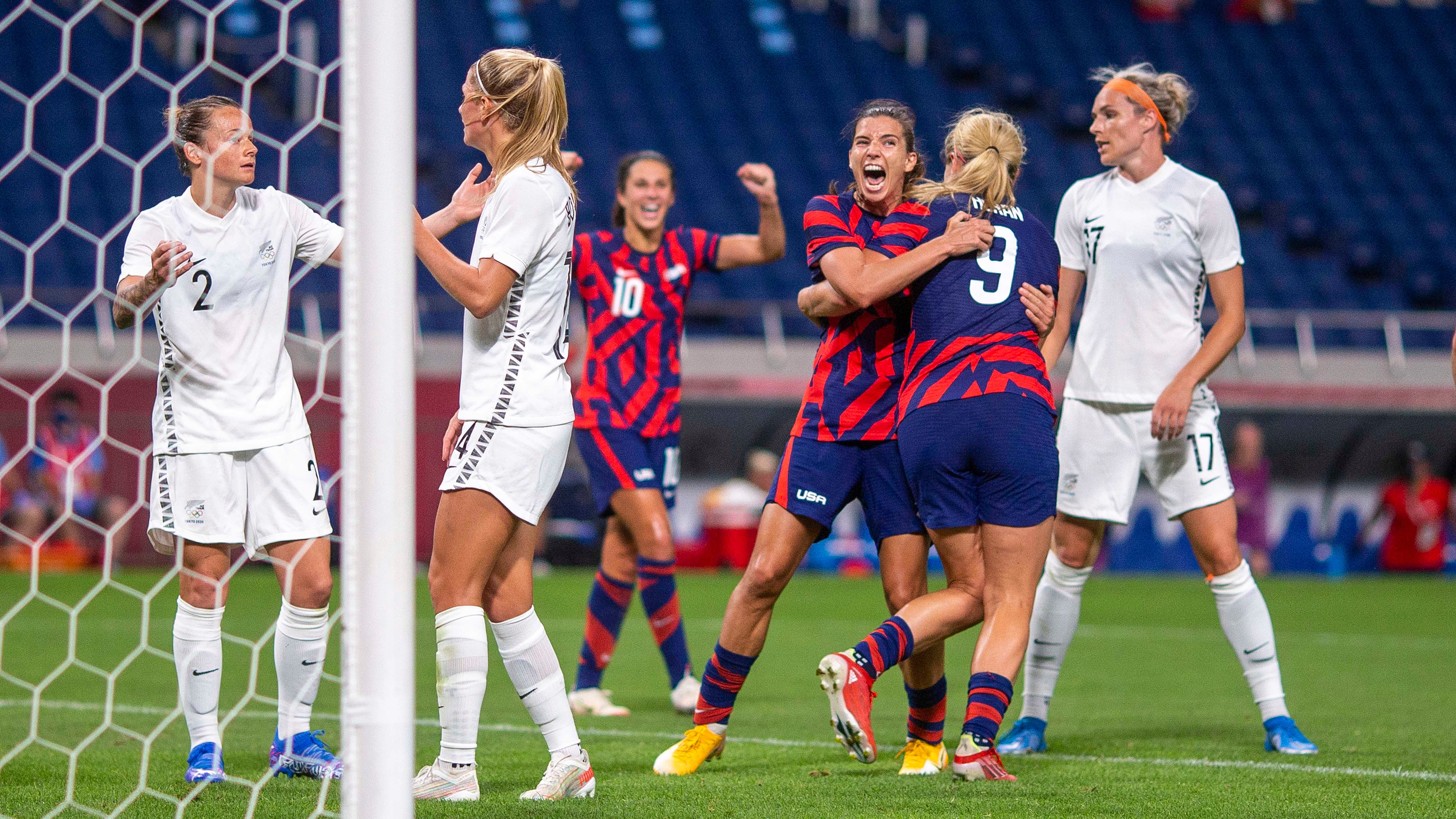 Christen Press, quien entró como suplente en la segunda mitad, anotó desde el centro del área a los 80 con un pase de Julie Ertz, antes de que Alex Morgan anotara en los minutos finales del tiempo reglamentario. Otro autogol de Nueva Zelanda cerró el partido en el tiempo de descuento.