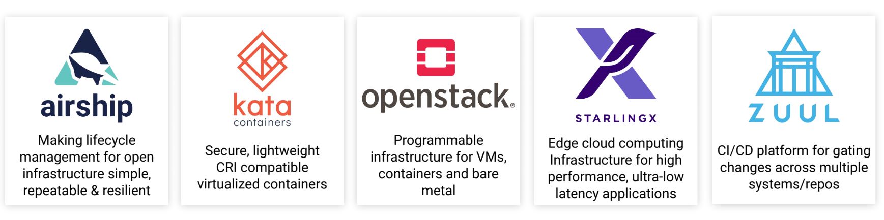 A lo largo del último año y medio, el OpenStack Foundation hizo el cambio de centrarse únicamente en el proyecto central de OpenStack para abrirse a otros proyectos relacionados con la infraestructura. Los dos primeros de estos proyectos, Kata Containers y el sistema de selección de proyectos de Zuul, han salido de su fase piloto y se han convertido en los primeros proyectos de infraestructura abierta de primer nivel en la OpenStack Foundation.