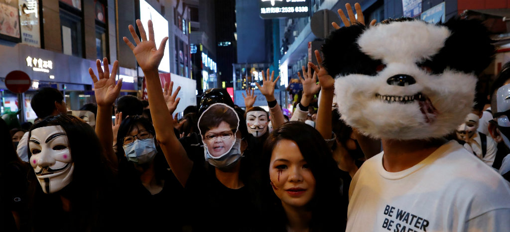En un claro desafío, hongkonés, en su mayoría jóvenes, convocaron una mega manifestación en la noche de Halloween, con disfraces, máscaras y maquillaje, para poder enfrentar la vigilancia policial, que desde temprano salió a las calles para contener la inusual protesta.