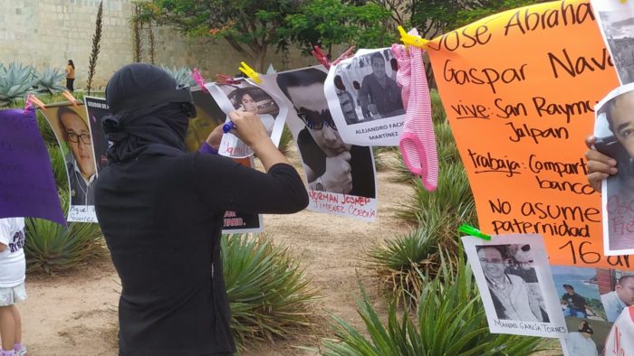 En Oaxaca según informes de las colectivas, el Registro Civil solo registra a nueve deudores morosos, y del resto no se sabe nada, por ello, las mujeres realizaron este tendedero.