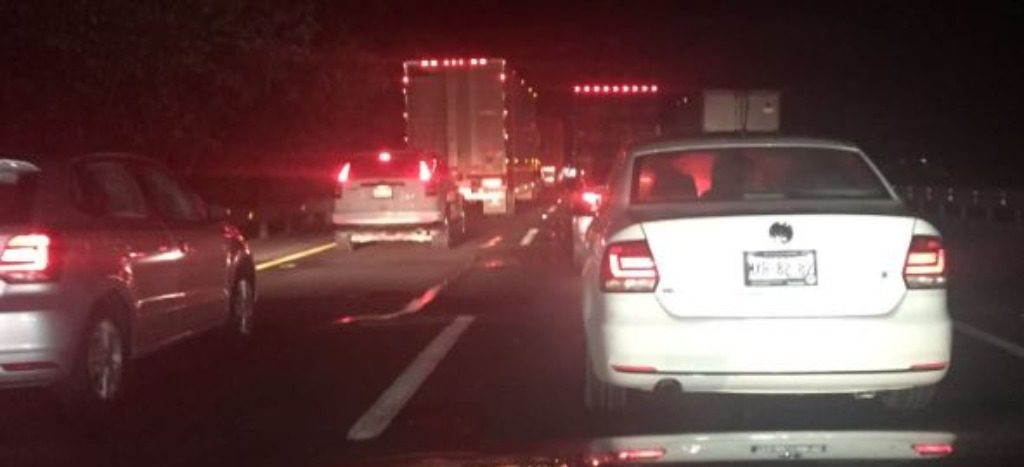 Así la vista desde el auto, solo iluminan los pocos transportes que van hacia #Queretaro… Los que vamos rumbo a #Mexico #cdmx apagados y muchos conductores durmiendo… Parece una broma de mal gusto. pic.twitter.com/Brj9S4doBB