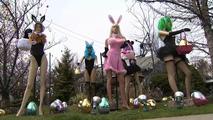 El dentista colocó en el jardín frontal de su oficina un grupo de seductores maniquíes vestidos con medias de red, lencería sexy y pelucas vibrantes con orejas de conejo y canastas de Pascua colmadas de huevos decorados.