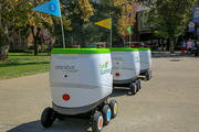 Al principio, se utilizarán tres robots, pero luego crecerán a una flota de cinco con el tiempo. Los robots, que pesan 80 libras y miden menos de 3 pies de altura, conducen solos y se detienen cuando alguien está frente a ellos, dice Robby.