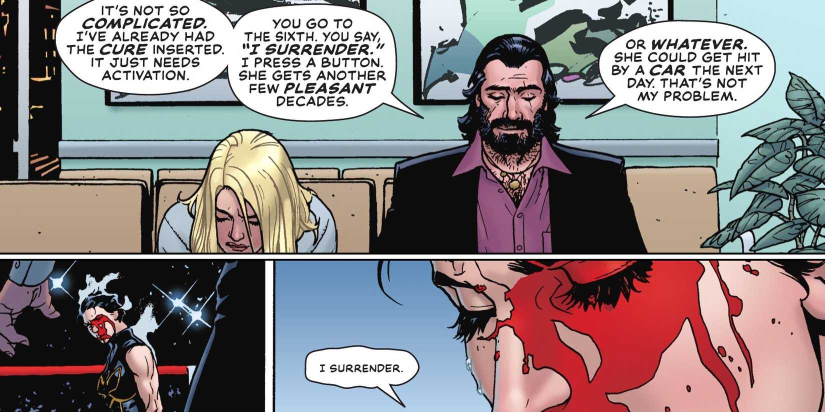 El misterio de la serie, como los lectores sabrán, es la razón real por la que Dinah aceptaría este enfrentamiento. El tema final revela la verdad completa, mostrando que Dinah acordó la pelea como una ganga con el inmortal Vandal Savage: rendirse a Shiva en la sexta ronda, y Vandal curaría la enfermedad terminal de su madre. Con la sexta ronda demostrando ser la más brutal, al ver a Dinah golpeado con su propio taburete de esquina (y su peluca se quitó dolorosamente), parecía que pasaría con el plan.