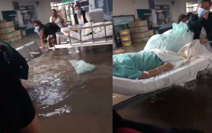 En redes sociales circularon imágenes de cómo las enfermeras cambiaban a pacientes en medio de la inundación