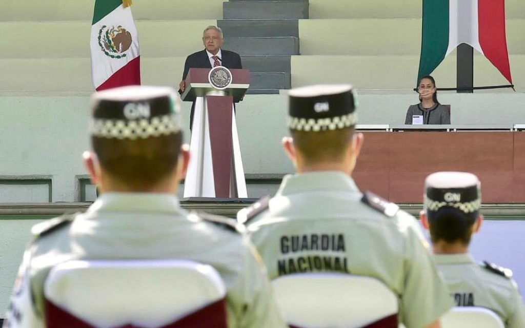 Destacó que a un año de la entrada en vigor del cuerpo de seguridad, este ya cuenta con 96 mil elementos, y que además, por el trabajo conjunto de la Secretaría de la Defensa Nacional, Secretaría de Marina y Secretaría de Seguridad y Protección Ciudadana, se han construido cuarteles.