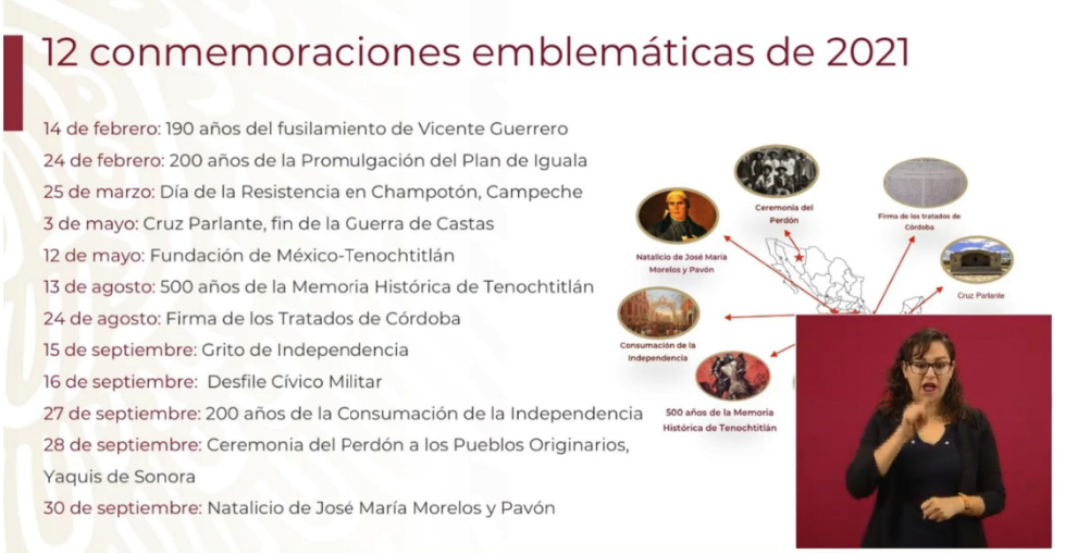 El 2021, será el año de la Independencia y de la grandeza de México, informó el presidente Andrés Manuel López Obrador, al anunciar el plan para conmemorar 700 años de la fundación de México-Tenochtitlán, 500 años de la caída de Tenochtitlán y 200 años de la consumación de la Independencia de México.
