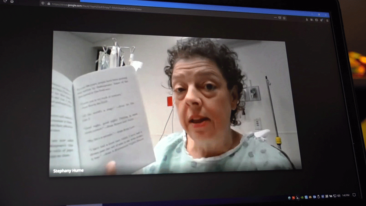 Stephany Hume logró acondicionar su cuarto de hospital hasta convertirlo en un salón de clases virtual, desde donde acompaña el proceso de formación de sus estudiantes. “Leer ha sido una lucha y ella hace que hacerlo tenga mucho más sentido”, dijo Memphis Mobley, estudiante de la escuela primaria Sewell del GISD.