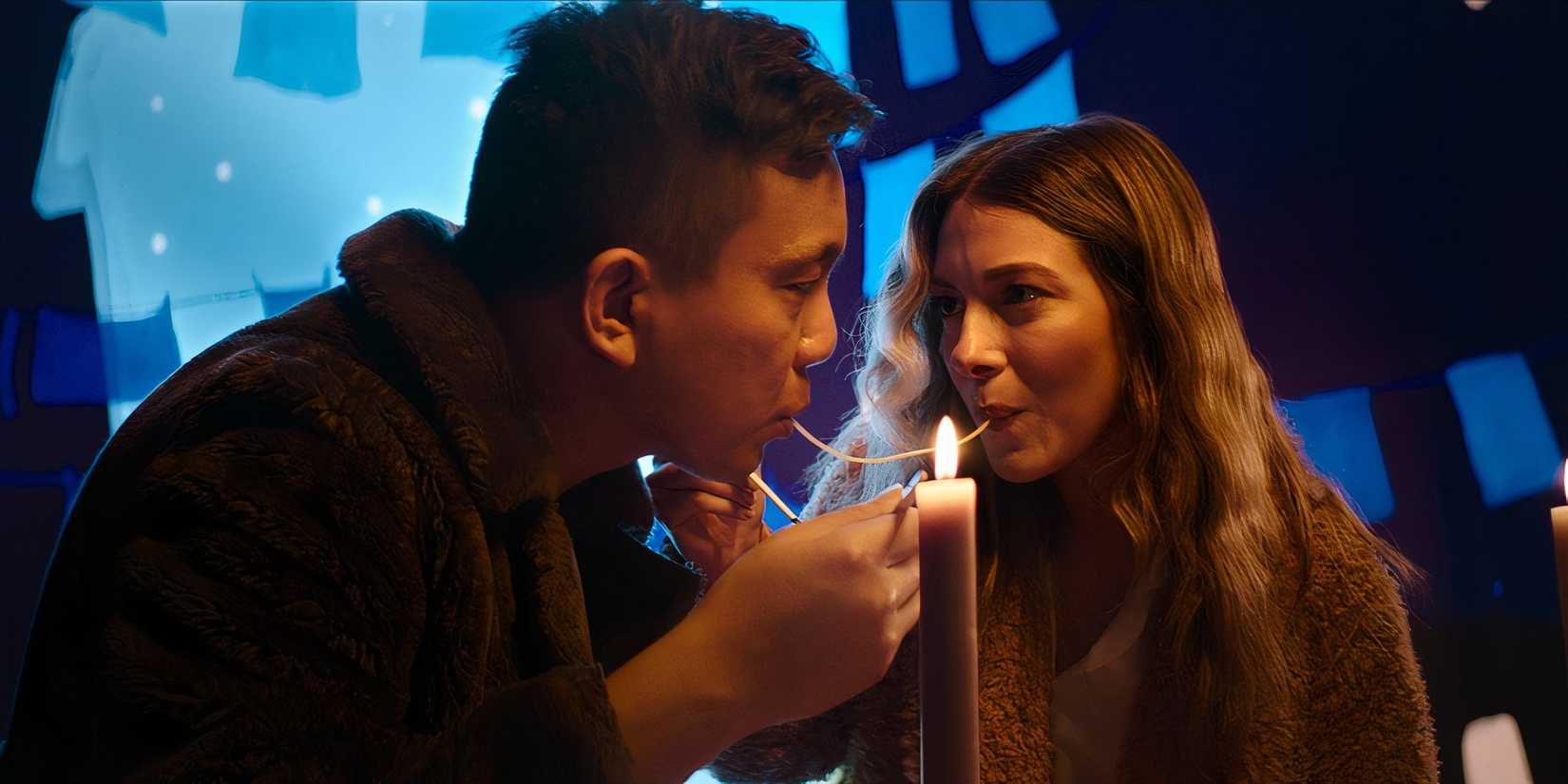 Desde el monólogo inicial (una parte vital de la comedia romántica clásica), no está del todo claro qué es real y lo que no es, a medida que las escenas cambian de un lado a otro entre Jason (Terence Chen) en una reunión de lanzamiento y la historia que está lanzando. Se presenta como su vida real, pero esto no se confirma de inmediato, y el comentario de los ejecutivos a los que está lanzando es oro absoluto. Esta capas continúa, ya que la verdadera historia involucra a Jason Fake-Dating Nora (Kendall Leary) para filmar una serie de anuncios sobre la historia falsa de su “relación”, y a medida que los ejecutivos se enamoran en silencio.