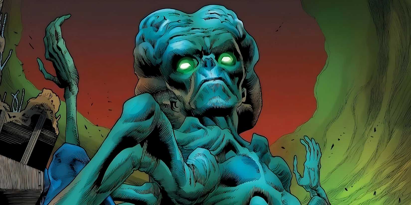 No es sólo un diseño brillante de un enemigo favorito de Marvel, sino una historia completa de las muchas formas e iteraciones del Líder, contada sin palabras a través de una imagen similar al LSD. Aquí destaca el Líder, listo para una iteración final en la MCU.