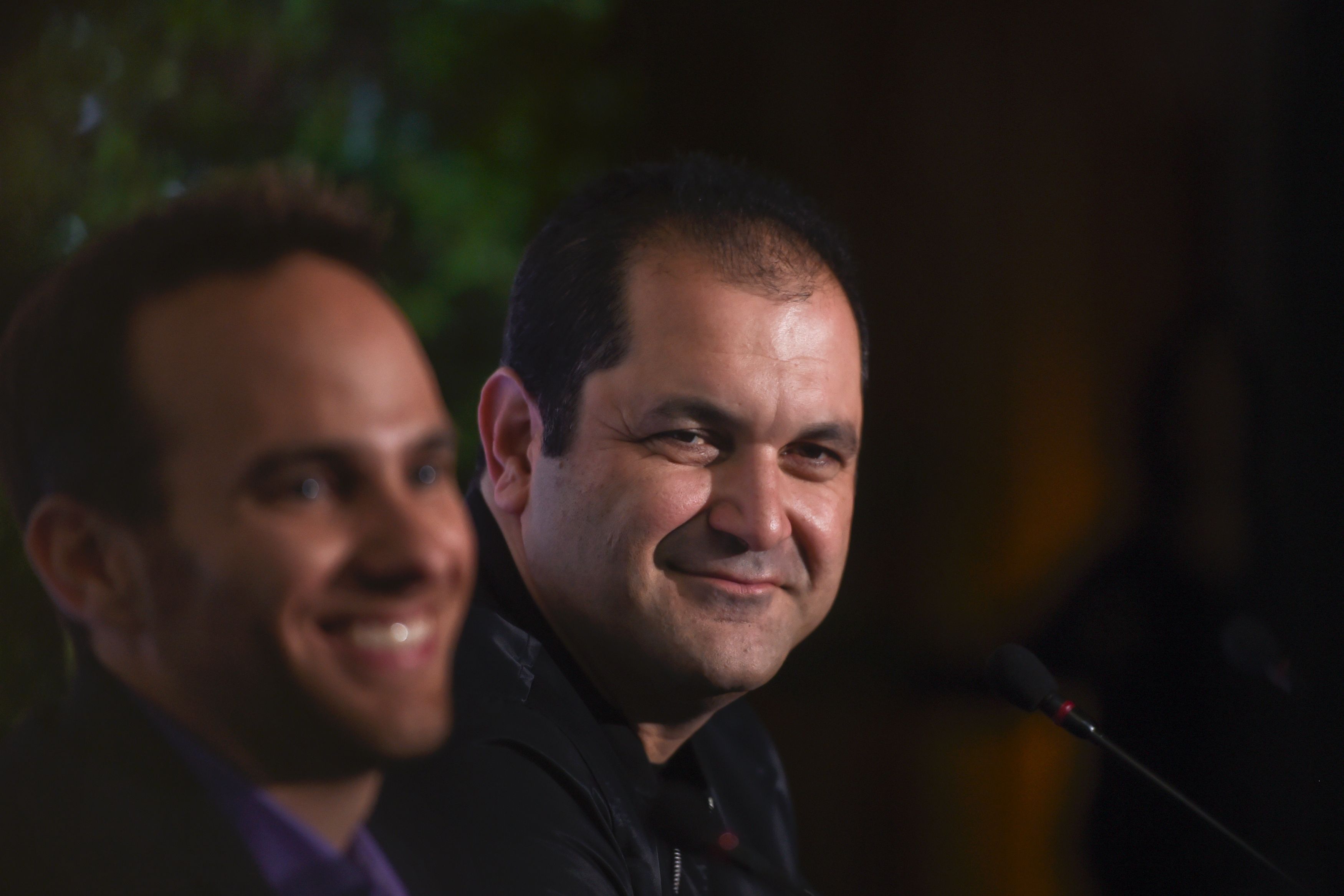 Shervin Pishevar (derecha) observa mientras da una conferencia de prensa durante la Cumbre Web en el Parque das Nacoes, en Lisboa, el 10 de noviembre de 2016. (PATRICIA DE MELO MOREIRA / AFP / Getty Images)