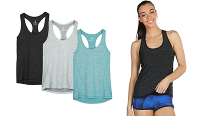Este lote de tres unidades resulta muy conveniente para tener camisetas de recambio si vamos a ejercitarnos varios días a la semana. Están confeccionadas en una mezcla de poliéster (al 95%) y elastano (5%) por lo que son ligeramente elásticas. No llevan mangas, el cuello es redondo, y se puede elegir entre distintos colores y en tallas desde la XS a la XXL. Es un producto muy bien valorado por los usuarios de Amazon, que le han otorgado una puntuación de 4,4 estrellas sobre 5.