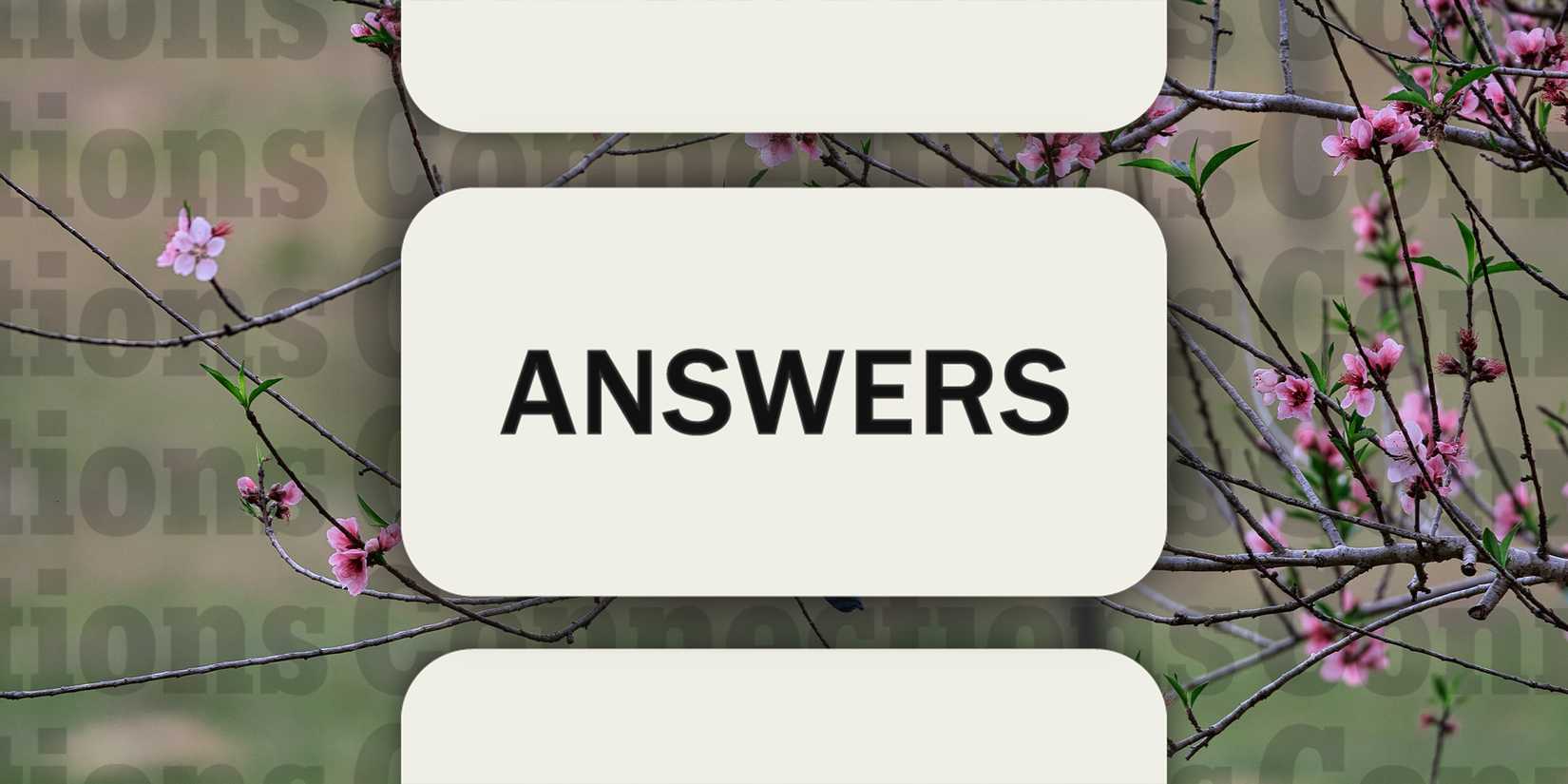 Clave: Los cuatro nombres de categorías sigue el patrón PALABRA___ para el rompecabezas de hoycon el que los jugadores frecuentes deberían estar familiarizados. La PALABRA que precede al espacio en blanco en cada categoría coincide con una característica distintiva del rompecabezas en sí, que se puede ver en la apariencia de una palabra resuelta. Conexiones rompecabezas.