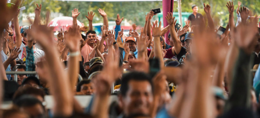 Como ayer en Carrillo Puerto, Yucatán, pidió a los asistentes que para “medirle el agua a los camotes”, levantaran la mano los que creyeran que se perjudicaría a la población con la construcción del Tren Maya, a lo que nadie respondió, mientras que todos la alzaron cuando preguntó si consideraban que sí debería contruirse dicha obra.