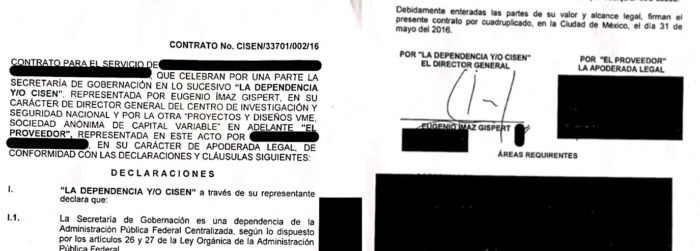 Los contratos CISEN/33701/002/16 y CISEN/33701/005/16, revelados este viernes, fueron firmados por Eugenio Imaz Gispert, director del Cisen, quien salió del centro de inteligencia cuando Osorio Chong renunció a la Secretaría de Gobernación.