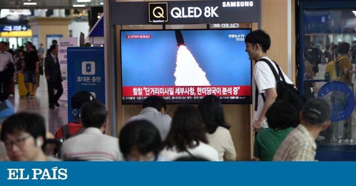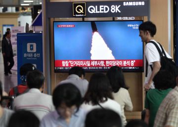 Imagen en la televisión del lanzamiento norcoreano de un misil, en una estación de tren en Seúl, este jueves. FOTOGRAFÍA: JUNG YEON-JE (AFP) | VÍDEO: REUTERS
