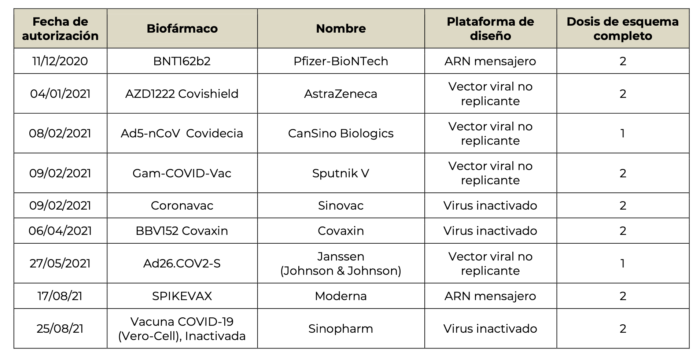 De esta forma, son ya nueve tipos de vacunas contra coronavirus SARS-CoV-2 autorizadas en el país.