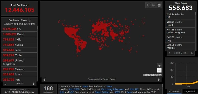 Según el recuento de Johns Hopkins, Estados Unidos es el país más afectado por la pandemia con 3.175.545 positivos para Covid-19 y 133.969 fallecimientos por el virus.