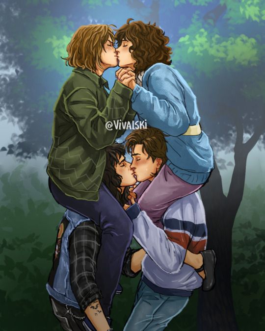 Mientras que Eddie y Steve se convirtieron rápidamente en uno de los más populares Cosas extrañas barcos, Robin y Nancy no se quedan atrás. Además, uno de los headcanons más comunes del programa son estas dos parejas que son mejores amigos. El artista vivalski ilustró maravillosamente a los cuatro personajes saliendo juntos, en lo que parece una cita doble.
