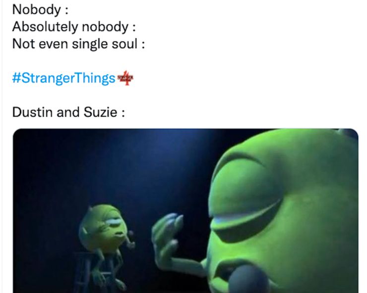 La escena de “La historia sin fin” causa mucha controversia, ya que los fanáticos sienten que esta es la razón por la que tanto Billy como Hopper están muertos (o se presume que están muertos). rinaldipEl meme de provoca risas y tristeza porque, si bien es un momento conmovedor (Dustin se queda con la chica), significa el fin de personajes impactantes.