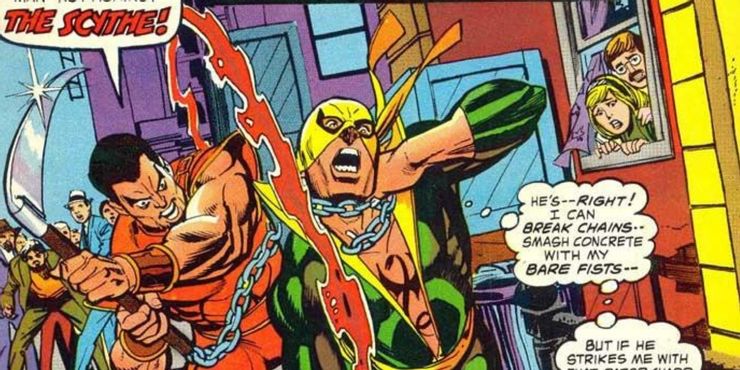 En Estreno de Marvel # 16, Iron Fist se enfrentó a su primer villano, Scythe. El mercenario se enfrentó al ‘Arma Viviente’ por una recompensa de 10 millones de dólares por su cabeza. Cuando Iron Fist hace su primer viaje a la ciudad de Nueva York, se involucra en un intenso duelo con Scythe, derrotándolo con facilidad.
