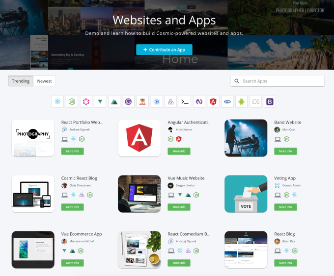 Si bien no es de código abierto, depende de los miembros de la comunidad para crear extensiones y aplicaciones. “Tenemos cientos de aplicaciones (sitios web y aplicaciones confeccionadas) y extensiones creadas por nuestra comunidad”, dijo Spiro. Estas herramientas permiten que Cosmic se conecte a los mejores servicios y herramientas como fotos, videos o búsquedas sin tener que crearlos desde cero.