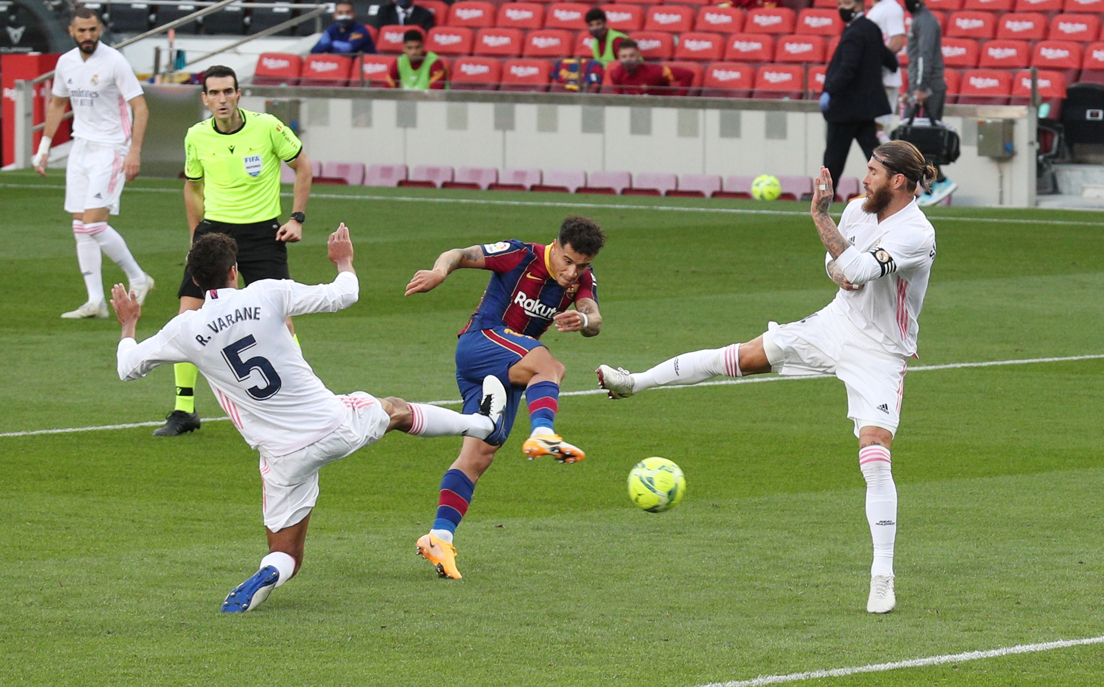 Cuando el partido se le torció en Getafe, Koeman apostó por una táctica ultraofensiva con Messi, Braithwaite, Trincão, Ansu Fati, Coutinho y Riqui Puig. No le funcionó en el Coliseum Alfonso Pérez. Volvió a insistir con un ataque muy poblado cuando Ramos firmó el 1-2. Esta vez con Griezmann, Messi, Trincão, Dembélé y Braithwaite. De nuevo sin éxito. Y, como si fuera poco, agudizó su fragilidad en la zaga, una situación muy peligrosa ante un todopoderoso como el Real Madrid. Modric liquidó el clásico. “Hemos intentado crear oportunidades de marcar. Queríamos dar más frescura en banda y jugar en uno contra uno. Y arriesgar atrás. No me importa perder 1-2 o 1-3”, reveló Koeman.