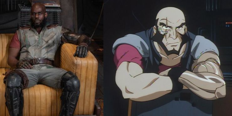 Cowboy Bebop de Netflix ha hecho un cambio a Jet Black, eligiendo a un actor negro para el papel, y Mustafa Shakir se ve absolutamente perfecto, capturando el mismo diseño y espíritu del personaje de anime. El maquillaje ha hecho un excelente trabajo al replicar la cicatriz facial vertical de Jet que corre por su ceja derecha, aunque la placa de metal que sobresale debajo parece haber sido colocada debajo de la piel en lugar de sentarse en su pómulo como en la serie original. El brazo de metal de Jet también parece fiel al anime original, con su brillo cromado que contrasta con el resto de su ropa. Físicamente, Shakir luce perfecto aquí, con su cuerpo voluminoso que refleja el físico intimidante de Black. Una vez más, el vestuario también parece haber hecho su investigación de Cowboy Bebop, con los atuendos funcionales y tonalmente apagados de Black frustrando los looks más nítidos de Spike en las imágenes publicadas. La historia del origen de Jet Black en Cowboy Bebop se ha explicado desde entonces, junto con su pérdida de una extremidad, lo que significa que sus características físicas tenían menos espacio para la licencia artística que los otros personajes de Bebop revelados.