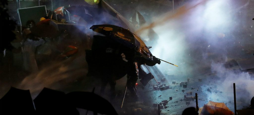 Los policías intentaban liberar el ingreso al túnel subacuático Cross Harbour, relevante para el tránsito de la ciudad y cercano a las instalaciones de la Universidad Politécnica, cuya entrada fue tomada por los jóvenes opositores.