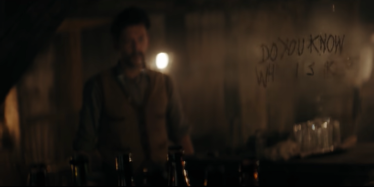 Esta no es la primera vez que Aberforth usa hábilmente un espejo mágico. En Harry Potter y las Reliquias de la Muerte, Aberforth observa a Harry (Daniel Radcliffe) a través de un espejo de dos vías. Cuando Harry le pide desesperadamente ayuda al espejo (que creía que mostraba los ojos de Albus) en la Mansión Malfoy, Aberforth envía a Dobby en su ayuda y podría decirse que les salva la vida. Muy parecido Harry Potter y las Reliquias de la Muerteespejo de dos caras, Animales Fantásticos: Los Secretos de Dumbledore muestra a Aberforth usando otro: el gran espejo detrás de la barra en su posada, Hog’s Head Inn. Aberforth primero usa el espejo para pedirle perdón a Credence: Credence ve aparecer el mensaje en la base de Grindelwald y rápidamente se da cuenta de que está hablando con la familia. Credence responde preguntando a Aberforth: “¿Sabes lo que es estar solo?” y Albus ve esto, así que comienza a armar el rompecabezas.