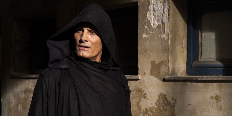 Crímenes del futuro El final también ve a Saul experimentar el alivio de su dolor por primera vez en toda la película. Habiendo encontrado previamente difícil comer, Caprice le da la barra de chocolate de plástico púrpura para comer y ver si podrá tragarla. El dolor de Saúl se alivia inmediatamente y la película se cierra con una sola lágrima que cae de su ojo, su silla chirriante, que anticipa su dolor, ahora en silencio. Aquí está la explicación completa del final de la película de Cronenberg, incluido por qué los personajes mutilan sus cuerpos para las actuaciones.