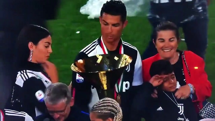 Cristiano Ronaldo junto a su familia durante la celebración de su primer Scudetto con la Juve: