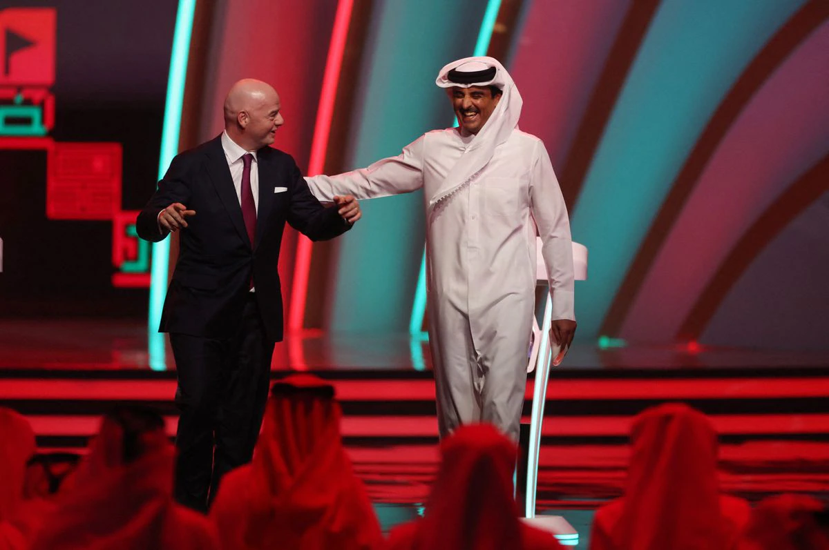 El presidente de la FIFA, Gianni Infantino, y el Emir de Qatar, Sheikh Tamim bin Hamad al-Thani, durante el sorteo del Mundial.CARL RECINE (REUTERS)