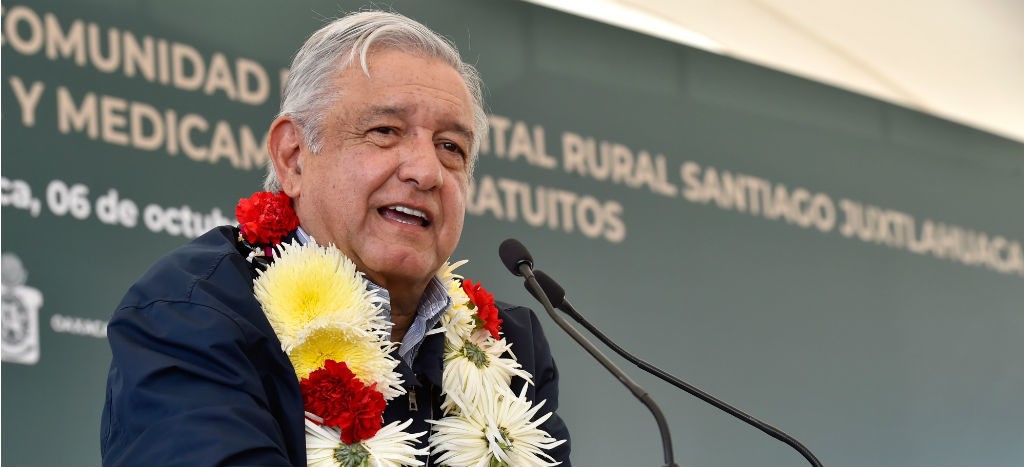 López Obrador estuvo acompañado por el gobernador de Oaxaca, Alejandro Murat, y funcionarios federales del gabinete del sector salud.