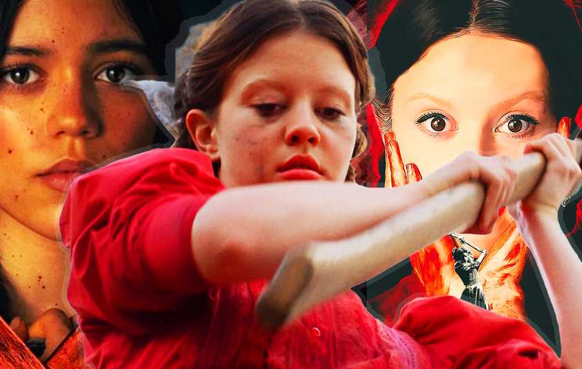 Perla se centra en cómo la joven aspirante a actriz interpretada por Mia Goth se convierte en una asesina, lo que significa que tiene claros paralelismos con X y explica las motivaciones de Pearl para la masacre del grupo de Maxine en 1979. Pearl termina matando a sus padres para poder perseguir su sueño de convertirse en estrella de cine, pero en su viaje, se topa con la industria del cine para adultos, al igual que Maxine en X. Pearl inevitablemente sobrevive a la precuela, ya que se convierte en Xes la principal asesina 60 años después, pero, a pesar de ser una villana, acaba siendo también un personaje increíblemente simpático.