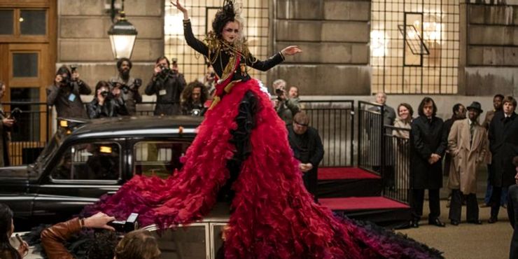 PerniciosoEl vestuario es indudablemente impresionante, con el aspecto instantáneamente icónico de Jolie como el personaje principal que sigue siendo la imagen más popular de la película. Mientras tanto, la realización de los moros incorpora ingeniosamente paisajes CGI para crear un entorno de fantasía genuinamente fascinante. Sin embargo, la eventual revelación de PerniciosoLa forma de dragón decepciona mucho a la película, ya que el personaje se convierte en un monstruo olvidable sin la profundidad de carácter del Smaug del mismo año. A diferencia de, Cruella puede tener efectos visuales menos lujosos debido a que la película es una pieza de época de comedia criminal en lugar de una película de fantasía, pero el vestuario de la película es un placer para la vista. Algunos de Mad Max: Furia en la carretera Las obras más icónicas de la diseñadora de vestuario Jenny Beaver desde ese éxito de taquilla de 2015, CruellaLos trajes complementan las caracterizaciones del elenco y brindan una plétora de esplendor visual para los espectadores. Los atuendos roban el show en la precuela de 2021, ya que solo es apropiado para una historia centrada en la infame fashionista.