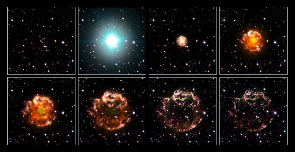 Una supernova es la explosión de una estrella. Generalmente son estrellas muy masivas que al final de su vida terminan expulsando todo el material que estaba en su interior por medio de una onda choque y eso nos permite ver las diferentes capas que la componían.