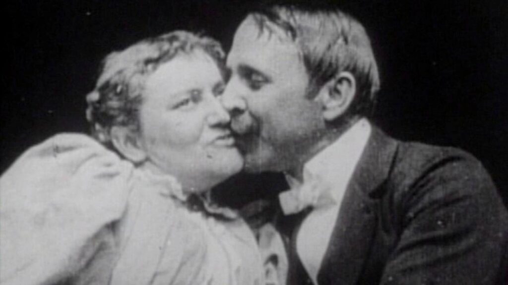 El film The Kiss duró entre 18 y 25 segundos. Consistió en capturar la última escena de la pieza teatral de Broadway The Widow Jones. Allí los actores sellan el fin de la obra con un beso.