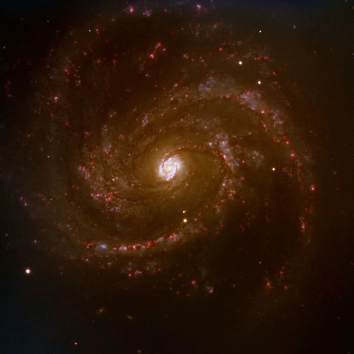 La galaxia Messier 100 o M100 es uno de los 110 objetos catalogados por Charles Messier (1730-1817). Las galaxias son denominadas por los astrónomos los “ladrillos del Universo”, ya que se agrupan en grupos “jerárquicos”, cada uno de ellos con más miembros que el anterior, como son los cúmulos, y supercúmulos, que forman la estructura a gran escala del Universo.Observatorio Austral Europeo