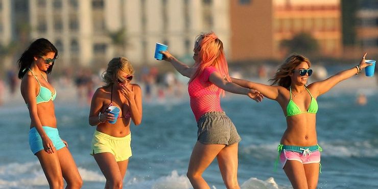 Cuatro estudiantes universitarios con dificultades económicas están tan desesperados por ir a las vacaciones de primavera en Florida que roban un restaurante para financiarlo. Si bien se salen con la suya con el crimen, pronto terminan en la cárcel debido a su comportamiento errático. Para su sorpresa, pronto son rescatados por Alien (James Franco), un traficante de drogas que deja que las chicas anden con él.