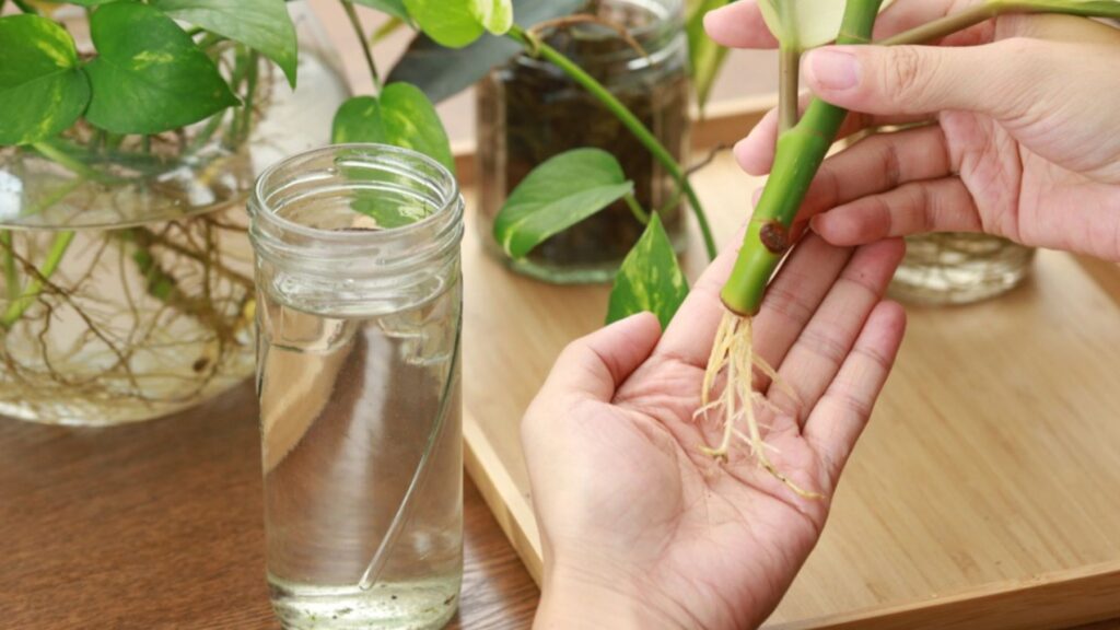 - Plantas de interior: Como ya hemos mencionado, las plantas de interior se prestan muchísimo a la reproducción por esquejes. Entre las mejores plantas de interior que se pueden enraizar mediante esquejes en agua se encuentran: potus, singonio, filodendro, spatifillo, pilea, diefembaquia y clorofita. También muchas plantas aromáticas como menta, orégano, albahaca, salvia, stevia, estragón, tomillo y romero.